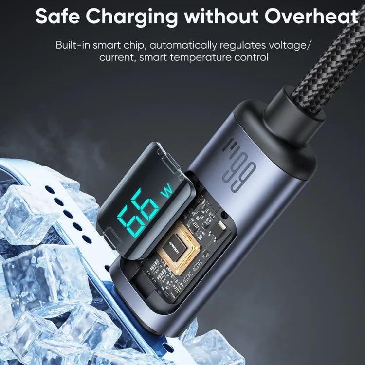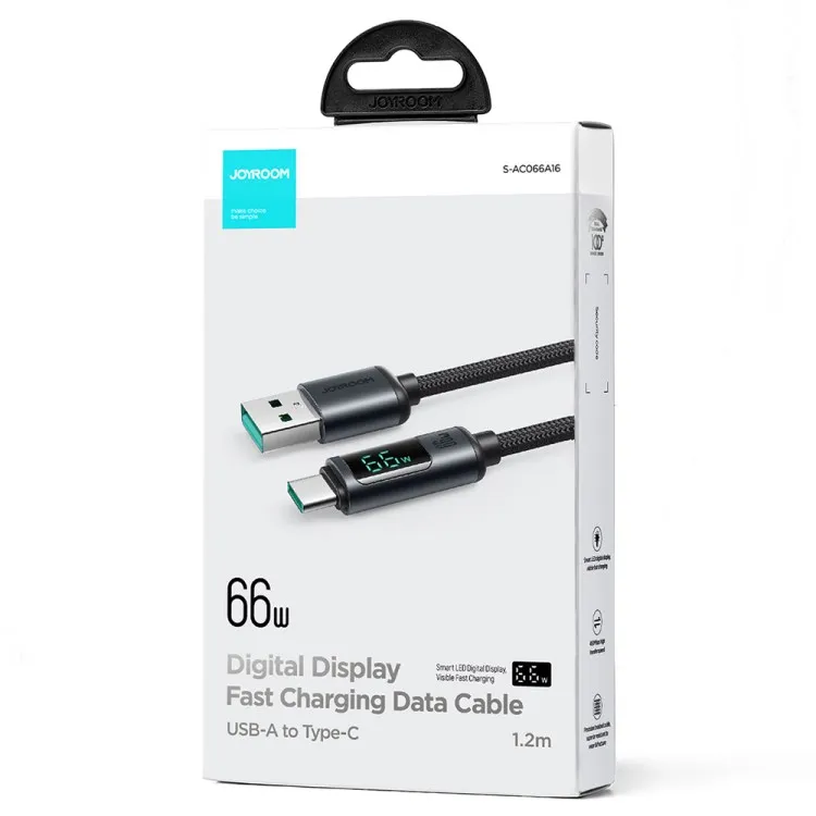 JOYROOM Fast Charging Cable 1.2m Prism Series Digital Display 66W USB a to Type C Data