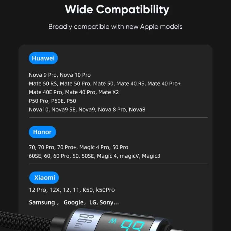 - Smart digital display, visible fast charging